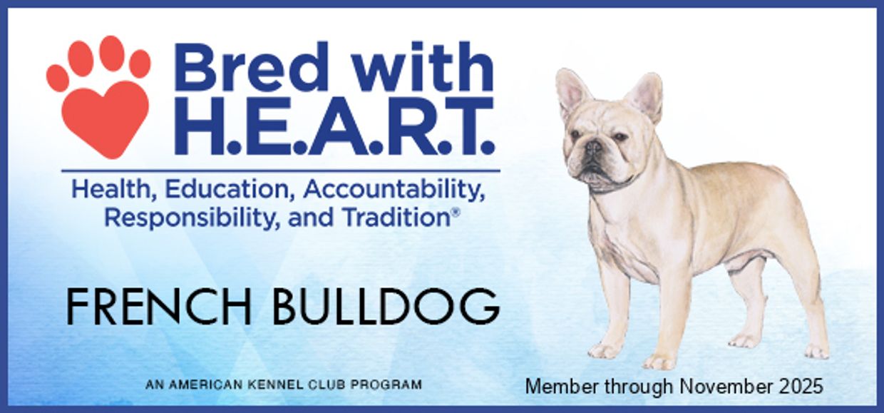 We are proud members of AKC's Bred With H.E.A.R.T program! As members we certify our breeding stock is health tested in accordance with the FBDCA's recommendations (and beyond in our case), we stay up to date on the best breeding practices and advances in canine health, we comply with the AKC Care